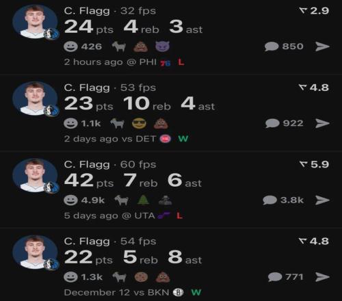 经历了刚进联盟之初的挣扎,弗拉格终于逐渐兑现天赋,本赛季至今场均贡献18.8分6.4板3.5助2.1失误1.3断,三项命中率47.8%、23.4%和82.8%。