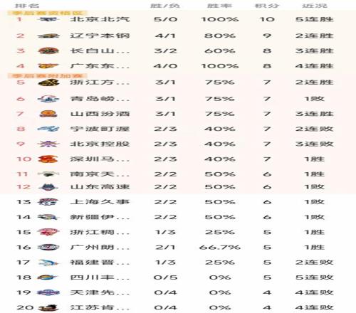 四川队难求一胜,46分更是创造CBA历史第二低得分,作为前总冠军球队,现在不仅遇到实力问题,连最基本的生存也无法保障,如何走出困境考验俱乐部和篮协的工作。辽宁和吉林这两支东北球队高歌猛进,暂列第二和第三名。